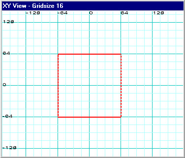 Ok, open SinEd, bring the 2D view to the foreground, set your grid to 16 units (5 key) and draw a 128 x 128 x 128 brush. In my examples, I used a clip texture for looks but texture doesn't matter at all here. Once you're done, make sure you go back to the XY 2D view (top view) using your NUM LOCK key. This is what you should have: