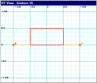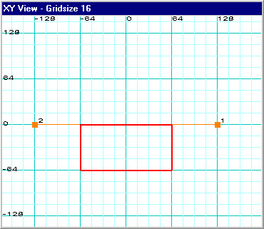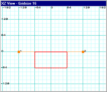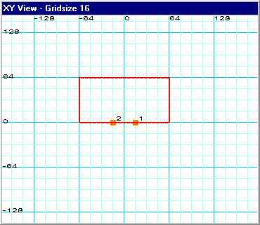 Let's try this right now. Drag point 2 to the XY coordinate 16,0 and then drag point 1 to the XY coordinate -16,0 which are both as close as we can get to the center of the brush at this grid setting. This is what you should have: