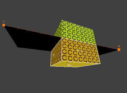 What happens in reality is that SinEd uses the line traced between the orange numbered dots to define the location and angle of the clipping plane. But the plane itself is not displayed in the views, only its resulting effect: the shape and size to which the selected brush(es) will be clipped or split.